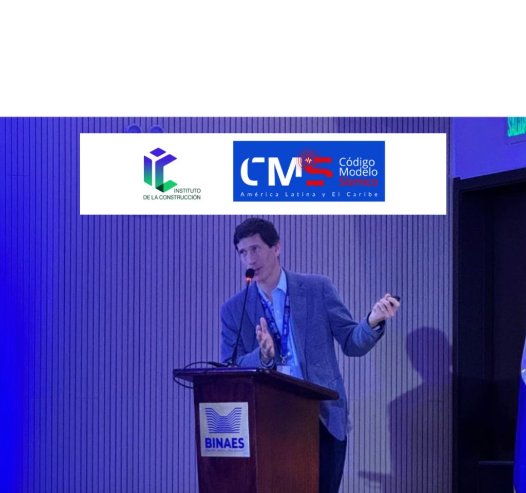 Francisco Ruz Vukasovic, director del Instituto de la Construcción, exponiendo sobre Clasificación de sitio, Geotecnia y Geofísica en la esta 8va. Jornada del Código Modelo Sísmico en El Salvador.