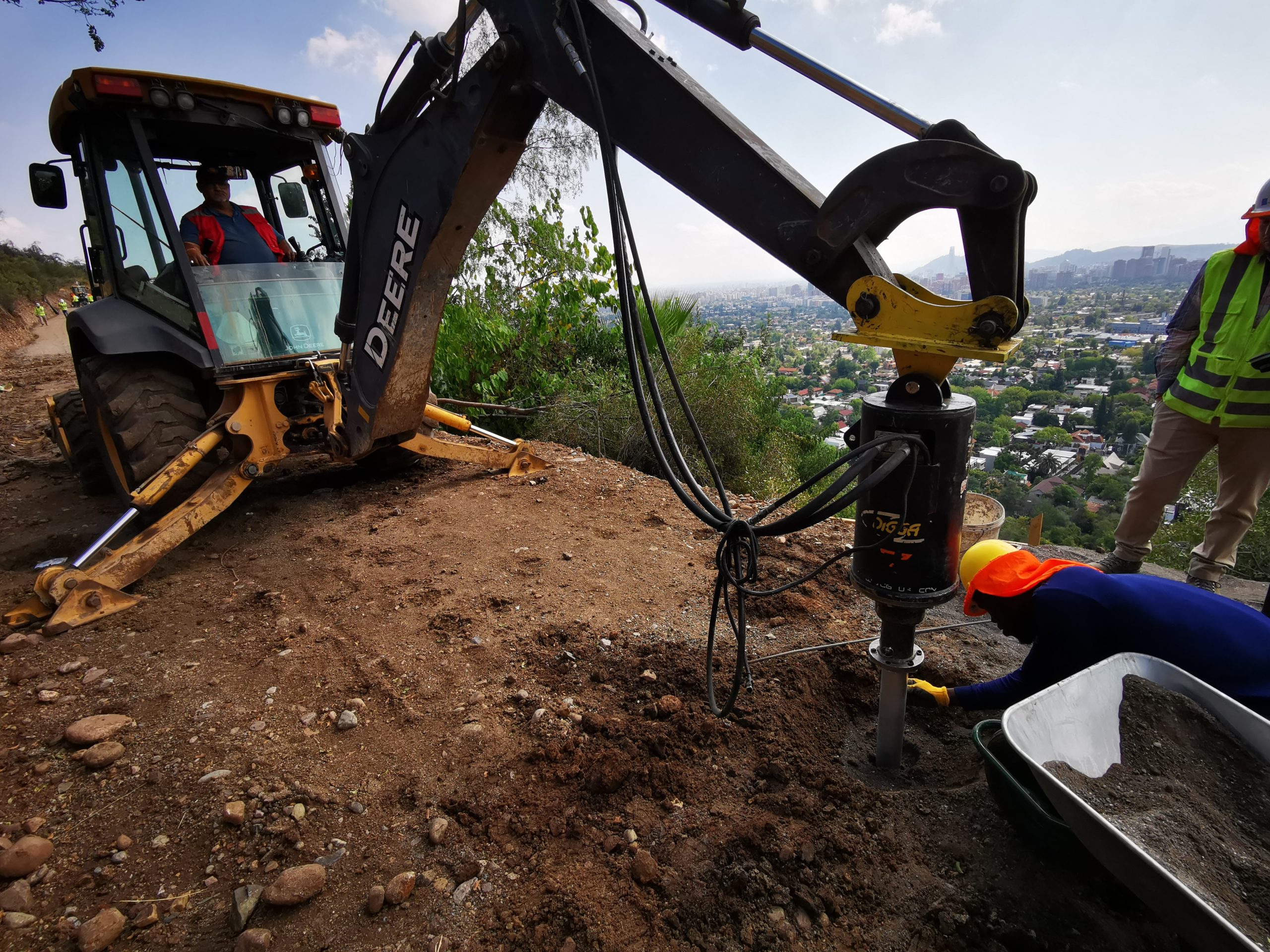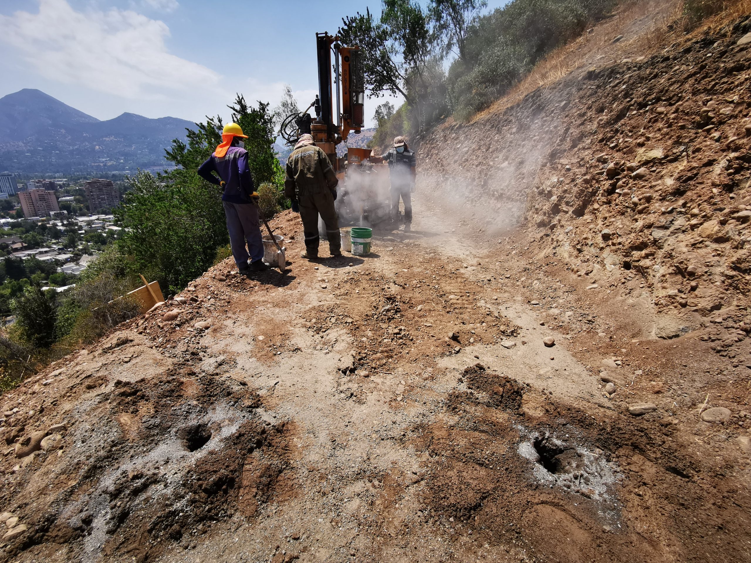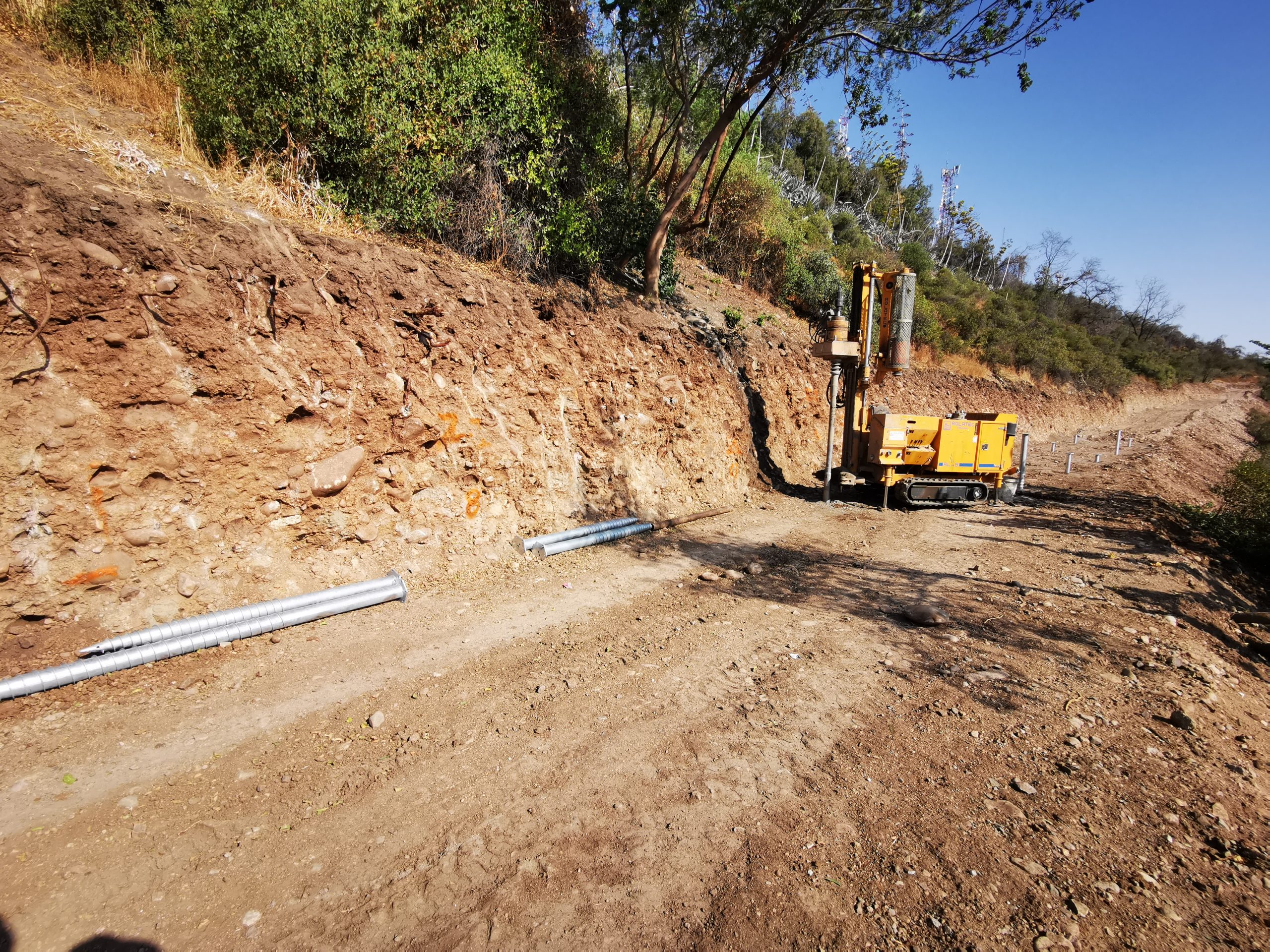 Un gran desafío para nuestra aplicación EcoPilotes fue fundar esta pasarela peatonal en el Cerro Calán, por el tipo de conexión la instalación debía ser melimétrica. Fueron 300 metros de largo por el perímetro de las faldas del Cerro Calán ubicado en Las Condes, Región Metropolitana Chile.
