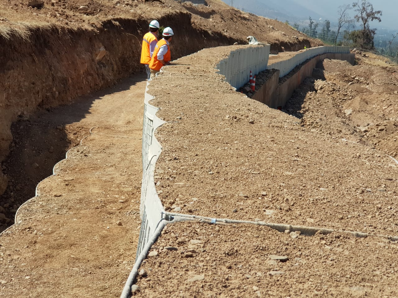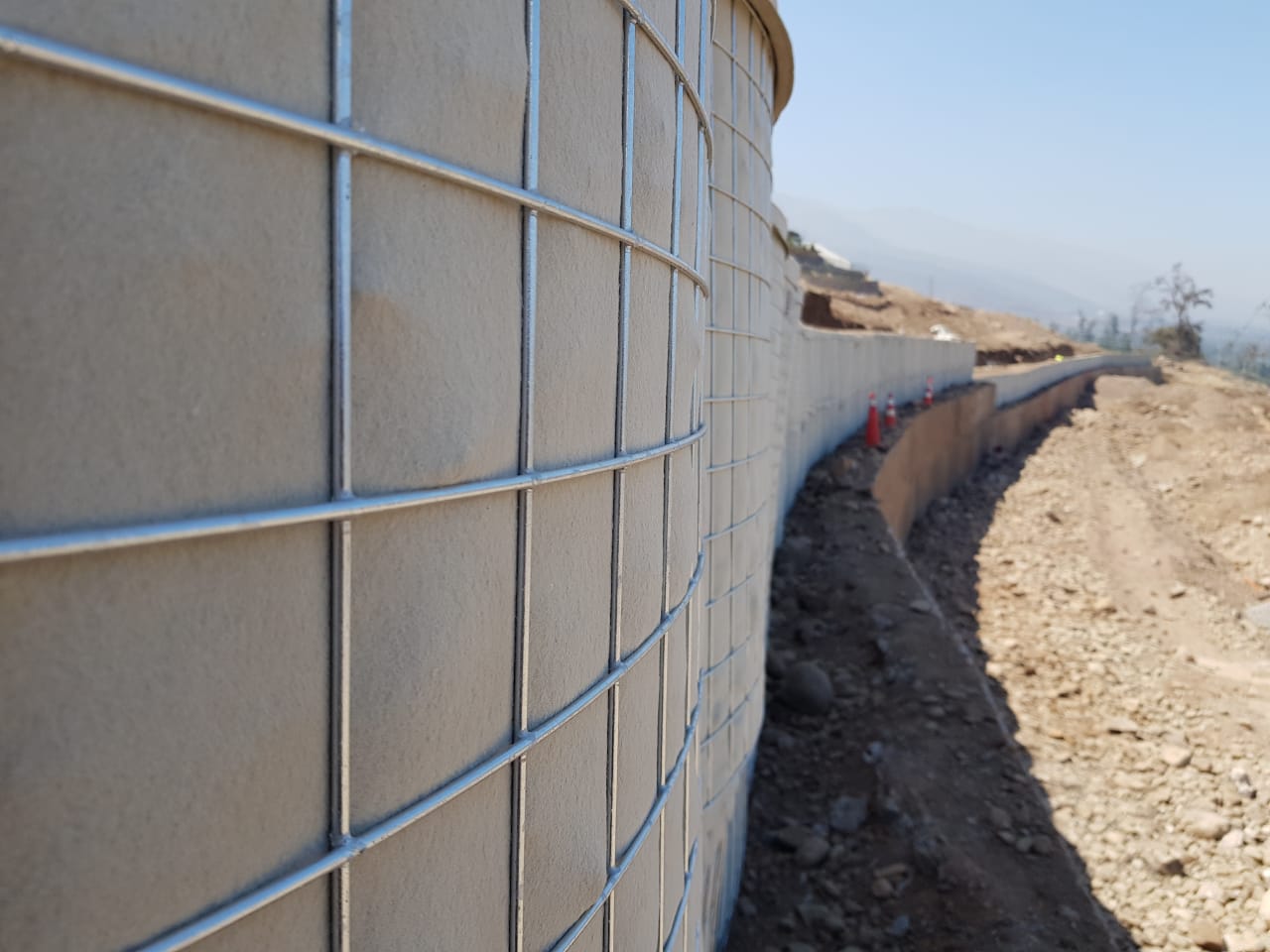 El sistema de contención propuesto consiste en la estabilización del talud por medio del refuerzo mecánico brindado por el intercalamiento de geogrillas de Polyester Strata, altamente resistentes a la tracción, entre medio de las capas compactadas del terreno. Por otro lado se brinda una rápida solución de un muro de contención de menor altura por nuestros Gavionflex.